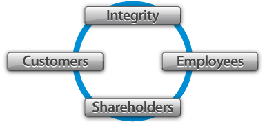 Our first value is integrity. We believe that by practicing integrity in everything we do, it will lead us to all our other values.